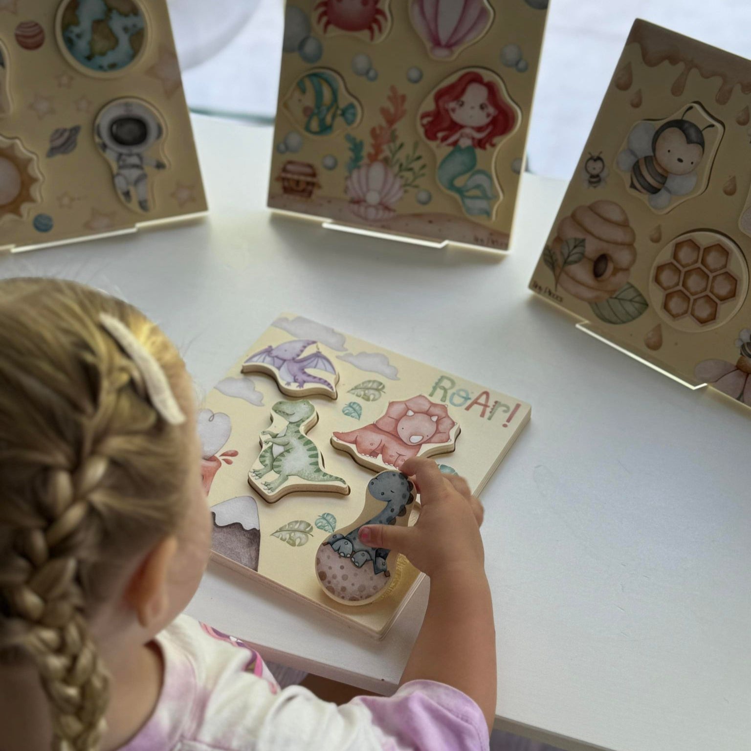 Completing puzzles takes some time and patience. Practicing patience is one of the best benefits children gain through completing puzzles. Puzzles promote the development of hand-eye coordination, concentration and visual perception as children try to fix the pieces of the puzzle together. Puzzles also promote the development of fine motor skills and problem-solving skills which are useful in life. They also help improve memory as the children try and figure out where the pieces of the puzzles go based on their shape. Children feel a sense of achievement as they fix the pieces of the puzzle.
